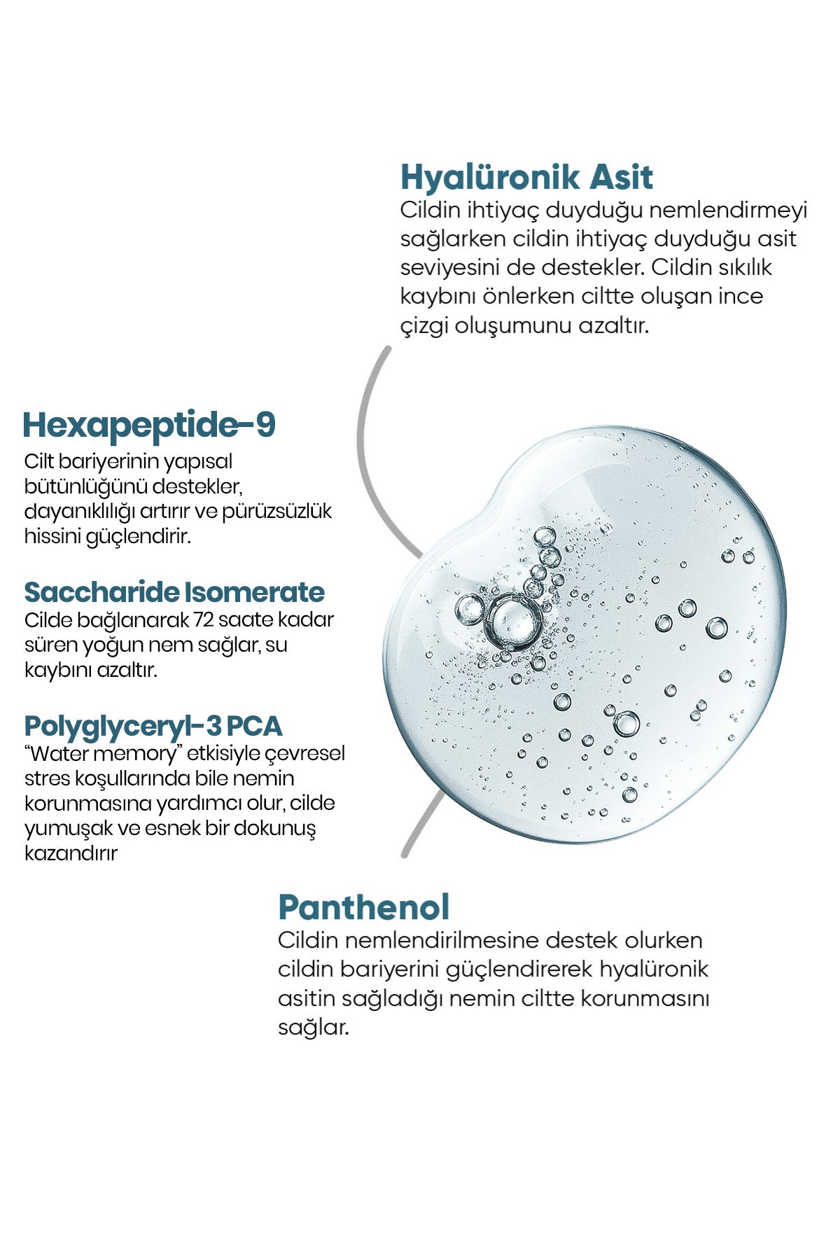 Yeni nesil yapısı sayesinde serum cilde hızla nüfuz eder; yüzeyde ipeksi bir pürüzsüzlük hissi bırakırken, derinlemesine nem desteği sağlar. Düzenli kullanımda cilt daha canlı, dolgun ve parlak görünür.
