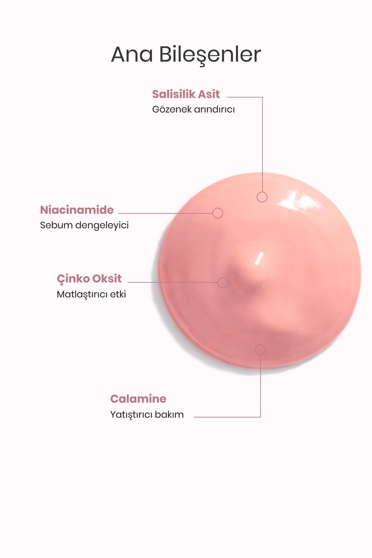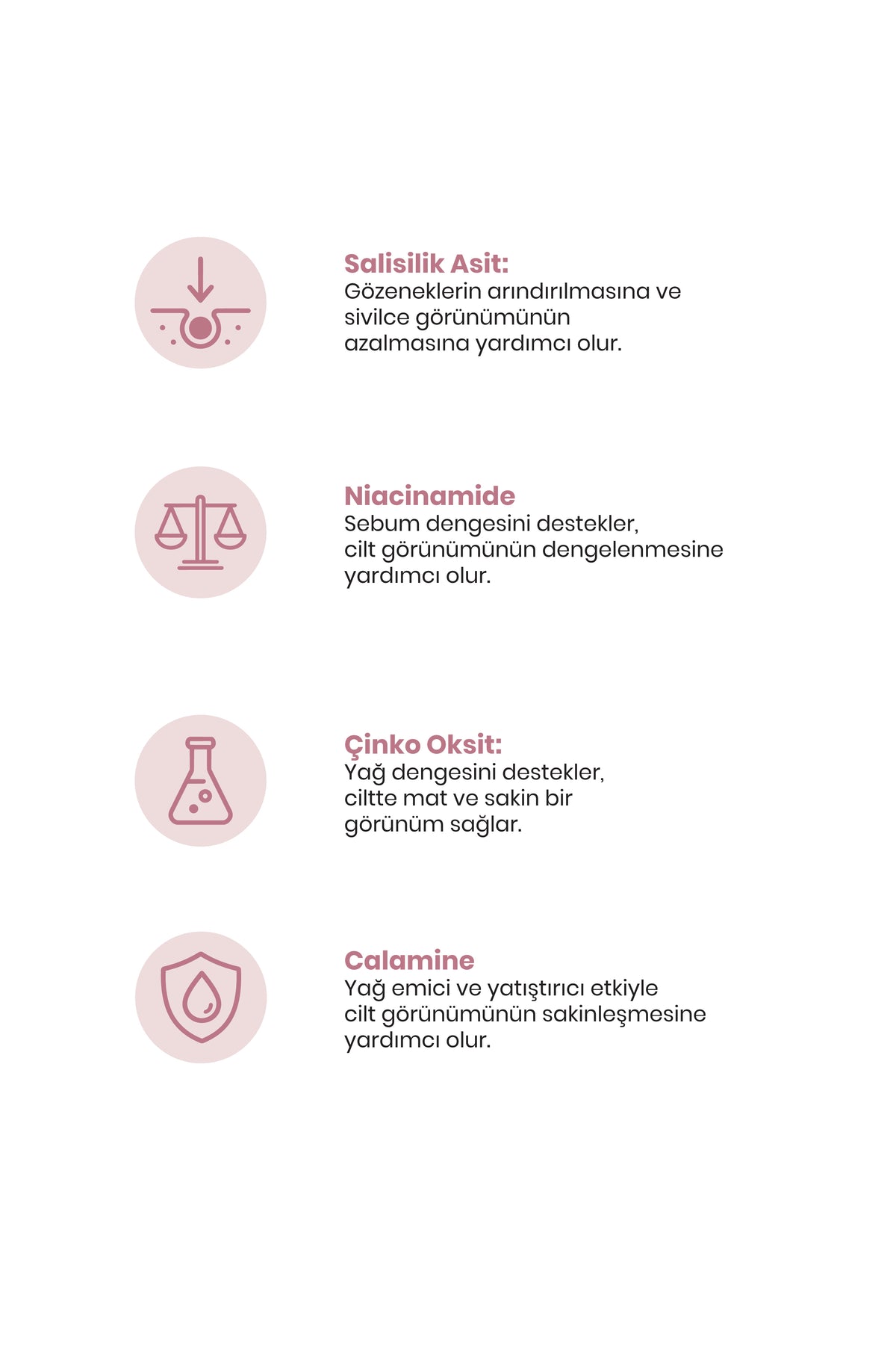 İçeriği Salisilik Asit, Zencefil Ekstratı, Niasinamid ve Çinko Oksit ile zenginleştirilmiştir. Sivilce görünümünü azaltmaya yardımcı olur. Cildin daha pürüzsüz ve parlak görünmesini sağlar.